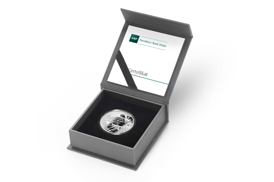 Srebrna moneta kolekcjonerska, wybita stemplem lustrzanym, w stanie I, prosto z pudełka bankowego, umieszczona w kapslu ochronnym i etui, z certyfikatem.