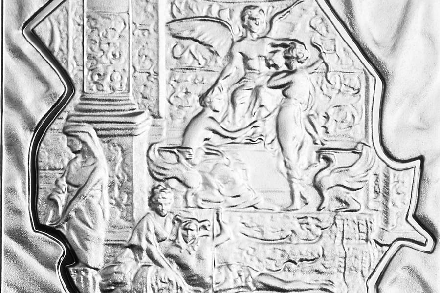 Ag 999. Waga: 28,28 g. Wymiary: 40 x 28 mm.
