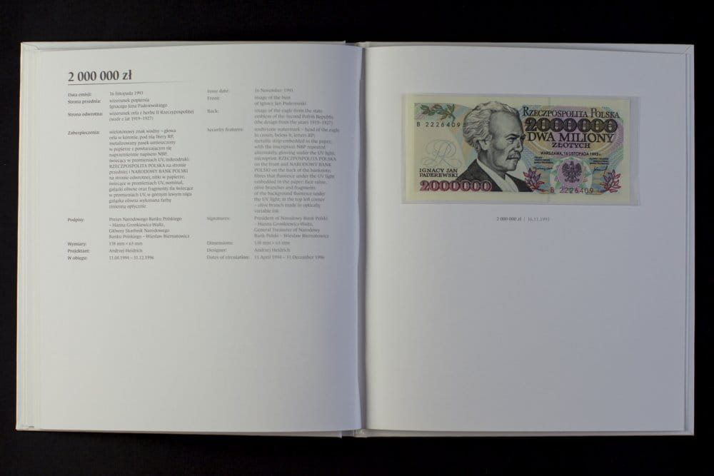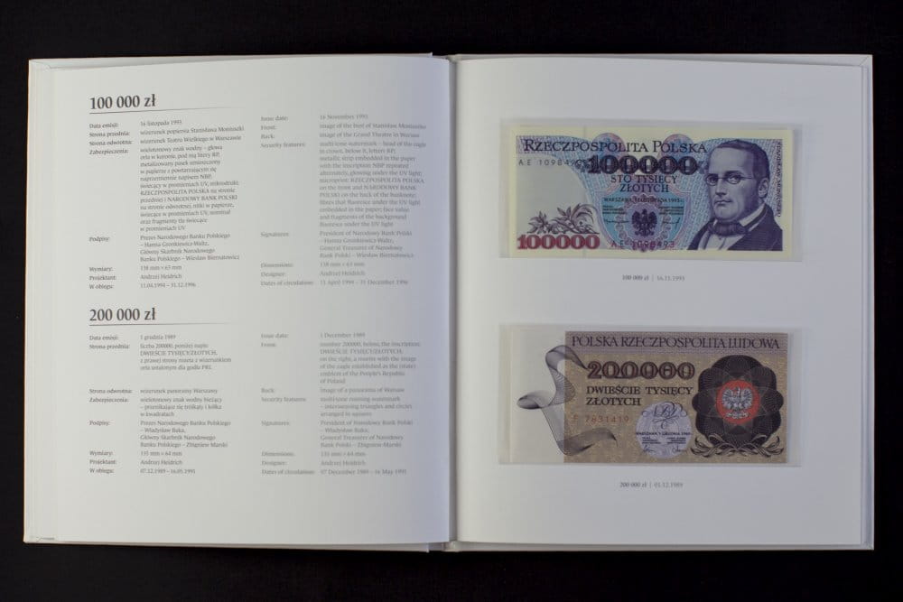 W albumie znajdują się banknoty w tzw. stanie bankowym z serii „Wielcy Polacy” zaprojektowane przez Andrzeja Heidricha, autora wszystkich wizerunków polskich banknotów obiegowych emitowanych od lat 70. do czasów obecnych. W zestawie znajduje się także wyjątkowy banknot o nominale 200.000 zł z wizerunkiem Warszawy, odbiegający w swej stylistyce i tematyce od pozostałych banknotów obiegowych z tego okresu. Wszystkie banknoty znajdujące się w albumie zostały wyprodukowane w Polskiej Wytwórni Papierów Wartościowych.