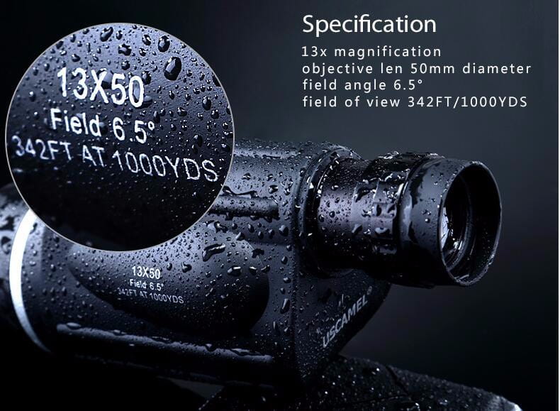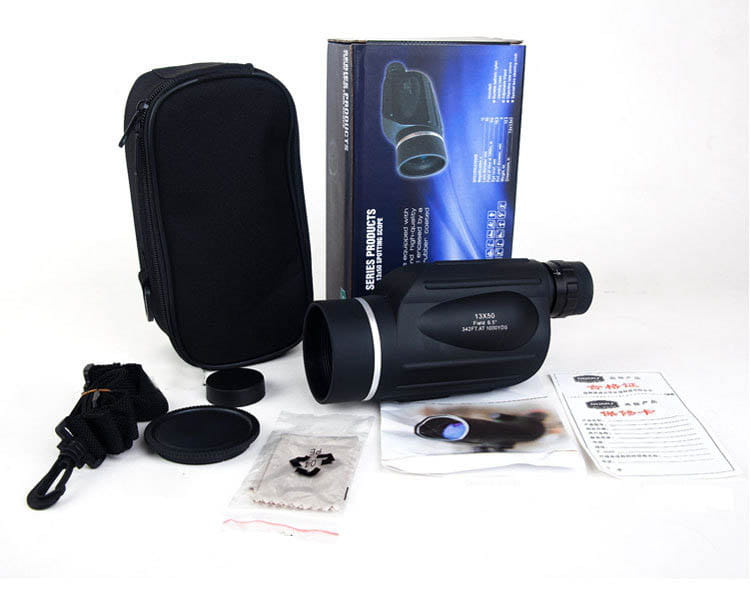 Wodoszczelny monokular GOMU 13 x 50 - powiększenie 13 x. W komplecie futerał (przypinany do paska spodni), ściereczka do czyszczenia szkieł.