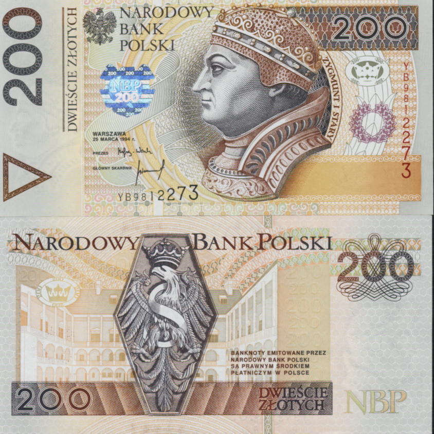 Banknot: Polska 200 zł / 1994 r. YB - Król Zygmunt I Stary.