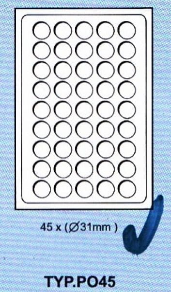 5 stron, 35 kapsli na stronie (w rzędach: 5 x 7).