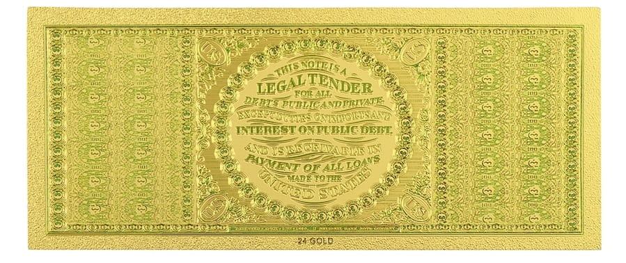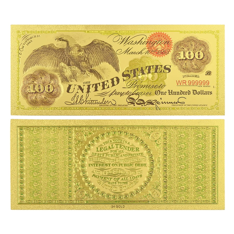 USA: Banknot złocony - replika banknotu 100 $ / sto dolarów /1863.